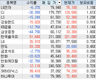그밖에 율촌화학, 한온시스템, 환인제약을 조금 사봤다.
